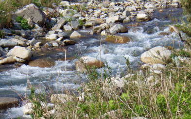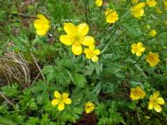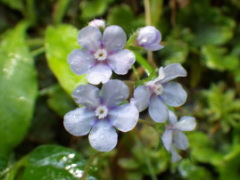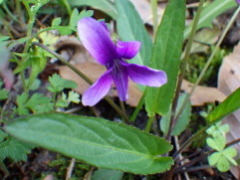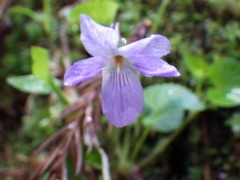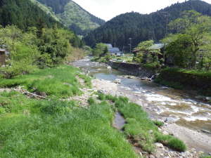 雨上がりの越知川名水街道を下る 神河町を流れる越知川は、播但国境を源とし千ヶ峰や笠形山のふもとを走り抜けて市川に注いでいる。川沿いには多くの名水所があり、自然や歴史にまつわる民話がいくつも残されている。 「越知川名水街道」は、越知川に沿った道を自転車下りコースとして整備したものである。コースの主要部は村の古くからの道や農道を通っているが、一部はバス道を利用している。 GWの最終日、越知川名水街道を下った。季節はずれの寒気によって、この日は朝から不安定な天気だった。スタート地点の「新田ふるさと村」で、名物のソバを食べながら雨宿り。ときどき、窓が光って雷鳴が聞こえた。 そんな雨も午後1時には上がり、薄日も射し始めた。1時20分に出発した。 コースには、順路を示す看板がNo1から続いている。 No2で右に折れ、木橋を通って右岸に渡った。林を抜けて、山すそのあぜ道を歩く。足元には、タチツボスミレやヤマルリソウ、クサイチゴにムラサキケマン、そしてニョイスミレ、カキドオシと春の花が次々と咲いていた。 雨に濡れた花々は、雨後の柔らかな光を浴びていっそう色鮮やかに見えた。