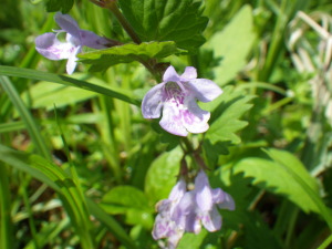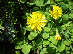No4からバス道を歩いた。道の脇には、タネツケバナ、カキドオシ、ノヂシャなど。民家の石垣には、ジシバリやオニタビラコが黄色の花をつけていた。