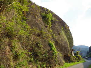 交流センターを過ぎ、No6で井根橋を渡って、川に沿ったあぜ道を歩いた。水の張られた田のあちこちで代かきが行われていた。道の傍らに、ヒメオドリコソウやノヂシャ、カキドオシがそれぞれの群落をつくっていた。 No8から下村橋を渡り、バス道を歩くと大歳神社に着いた。神社の境内の端に三段重ねの岩が立っていて「重箱石」と呼ばれている。 この岩に秘密を打ち分けても、いつまでも開けられることがないので、その秘密は絶対にもれることがない。そこから、この石の重箱は、秘密封じの名刹として地域の信仰を仰いできた。