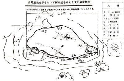 小西さんと工藤さんは子弟コンビ。戦後間もない頃、兵庫県立農蚕学校「生物クラブ」部員の工藤さんは、理科教師の小西さんに自然科学の手ほどきを受けていたのです。 1966年、師の小西さんからの一本の電話で子弟コンビが復活し、但馬での地学研究がスタートしました。このあたりのことは、工藤さんが著者の一人である『白いヒスイ谷への招待(2003)』に描かれています。