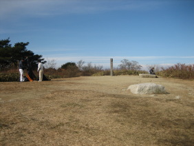 茶屋から出ると、日差しが山を照らしていた。山上の車道を渡り、コンクリート道を上って電波塔の下を抜けると、山頂に達した。