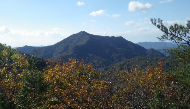 そこは少し開けていて、木々の間から南に数曽寺山塊や金城山が見えた。西に見える三角点山は、ここから遥かに遠かった。