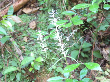 道にタケニグサが現れたところに、「猿岩登り口 猿岩まで100m」の標識がかかっていた。ここから急な斜面を真上に向かって道がつけられていた。