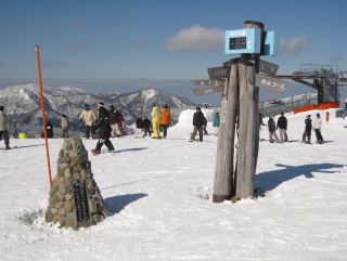 もう目の前は、鉢伏山の山頂。小鉢を滑り降りて、ゆるく上り返すとスキーヤでにぎわう山頂のリフト駅に達した。