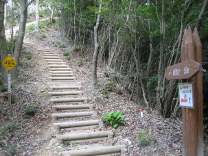 山頂から、ハイキングコースに戻った。千手観音をしずめ、その縁起を今に残す横倉山観音堂は、山の中腹に静かに建っていた。ここから、石仏の並ぶ参詣道を下り、振子川沿いの道を歩いて大歳神社へ戻った。