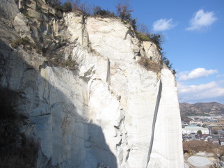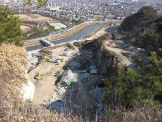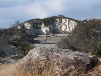 山頂の周りは、どちらかも石切場が迫り、ストンと真下に切れ落ちていた。茂みの周りを動いて石切場の上に立つと、その方角の眺望が開けた。