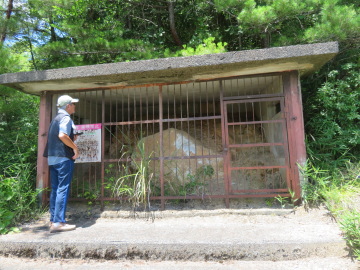 加保の集落から加保坂に向かう道に入ってしばらく進むと、ひすい輝石岩の露頭があります。ひすい輝石岩は、コンクリートと鉄格子に保護されて、横には「兵庫県指定文化財 加保坂の硬玉(ヒスイ)原石露頭」の案内板が立っています。 ひすい輝石岩は北海道から九州までの各地で発見されていますが、ひすい輝石岩の自然産状を示す露頭が発見されたのはここが初めてでした。 鉄格子のフェンスの中に、風化して赤く粘土化した蛇紋岩帯の地層に囲まれて白いひすい輝石岩が飛び出しています。大屋のひすい輝石岩は、ひすい輝石の柱状結晶が集まったもので不純物をほとんどふくんでいません。そのために白く、「白いヒスイ」と呼ばれています。