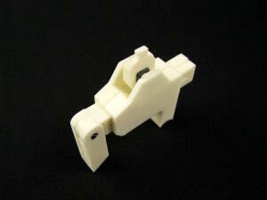 | カカトのクローはポリランナーで可動させます。 ホゾとダボで位置決めが出来ます。 |