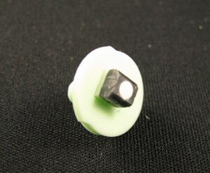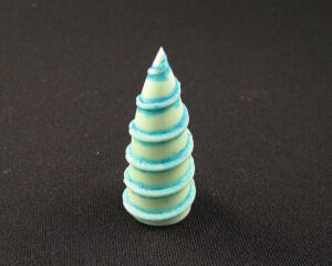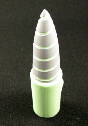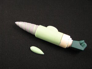 | シリコン型にレジンを流しました。 見やすいようにエナメルの塗料で 色を付けてあります。 こうしてみると、ロボダッチのモグラロボの ドリルパーツその物です。 |