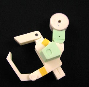 | 緑がメインのパーツ。 黄色は別パーツで前腕の接続軸に成ります。 |