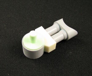 | 組み合わせたところです。 | オレンジの中に入るポリキャップは 緑のパーツに固定されポリの摩擦で スライドします。 |
