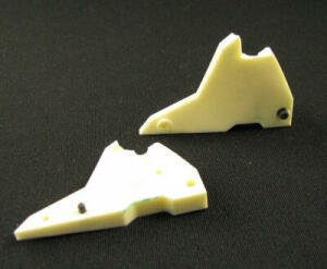 | 爪とかヒザとかのパーツ。 これはこのままシリコンを流して型を作ります。 細々したパーツを一つずつ削り出すのは 効率が悪いからです。 |