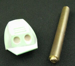 | フクラハギ下方の円錐状の窪みは ポリパテを詰めて真鍮の丸棒を旋盤で削りだし ワセリンを塗って押し込みました。 |