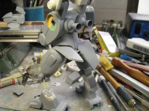 脚の増加ユニットは通常の物に被せるのは 最初から断念。ガレキでやると塗装が はげたりするので通常の物と換装することに しました。 |