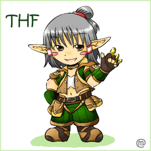 シーフ。服がごてごてしてます。表情が何か凶悪に…。前回適当に描いていた服を細部まで調べて細かく描いてみたり。ギルってどんな感じなんだろう…?こんな感じの丸い硬貨だと思っているのですが…。