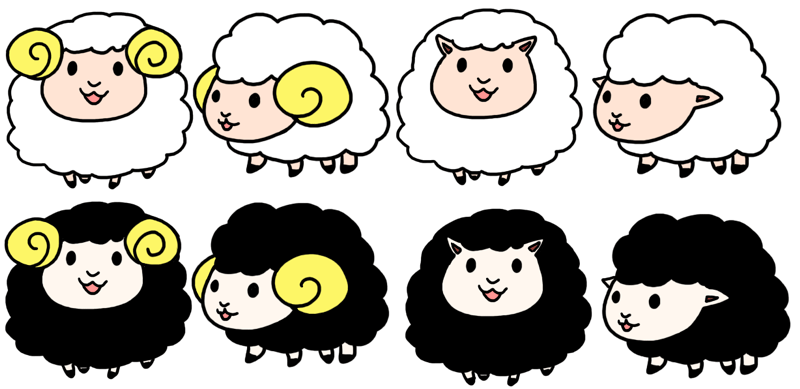 毎度おまけのカットイラストです。今回は、毛の色・ツノの有無などの微妙な違いで複数パターンを作りました。