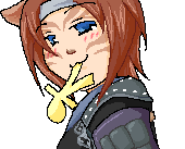 見下ろしてるのが描きたかったのですが…。 口に加えているのは忍者必須アイテム。 ミスラというのは種族ですが、実際のミスラには まゆげは無いです。 (顔の模様が眉毛の役割…ですが、やはりまゆげ無しは難しい)