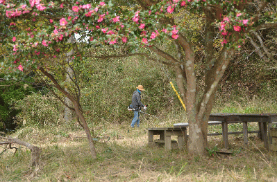| S藤さんは第三郭の担当。毎回参加してくださるので刈り払い機もすっかり板についてきました。途中からはK池さんも応援に。カメラを刈り払い機に持ち替えてもなかなかの作業ぶり。さすが機械ものに強いK池さんでありました。 | |||