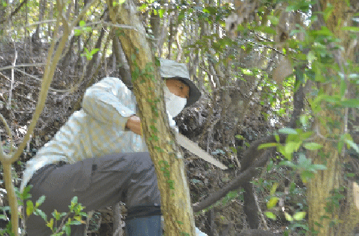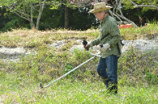 | 人手が足りないのでカメラマンのK池さんも草刈りをやってくれました。いつも参加してくれて本当に感謝です。 |