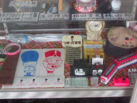 ドリームボウル正面のショウケースの中に、懐かしのドリラングッズ発見!