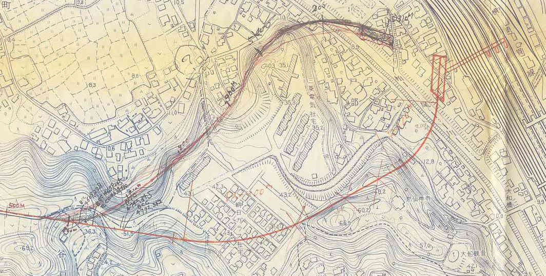 大船観音の山の下をトンネルで抜ける計画だったと思われます