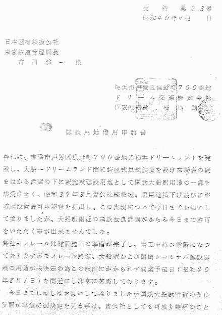 それは昭和40年4月にドリーム交通から国鉄に提出された文書です