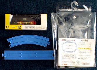 | パックに入った状態 | 中身:C12単品と、直線レール2本、曲線レール8本入り。 |