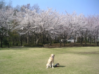 街の中にある立派な公園。毎年このように立派な桜が満開になります。週末には芝生の上にシートを敷いて花見の人たちで賑わいます。 |