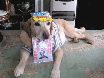 お姉ちゃんが買ってきた福豆。 2月3日は節分でしたが、この日を境に人の運勢や世の中の情勢が変わるといいます。もしそうなら、特に世界の経済状態は早くよくなってほしいですね。 アレックスがくわえているのは、お姉ちゃんが自分で買ってきた節分の豆まきに使う福豆です。