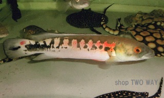 | クィーンギャラクシーパイクの名で知られている。 大型になるが、性格は比較的おとなしい。 生餌しか食べないといわれる本種でも幼魚のうちから 慣らせば、人工飼料も食べるようになる。 入荷は以前よりも更に減ってきている。 |