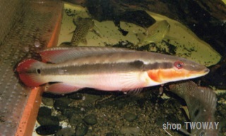 | 以前はアクチロストリスグループとされていたが、ルグブリア属(旧ルグブリスグループ)とされた。 性格はパイクシクリッドにしてはやや温和であるが、 アグレッシブな性格の個体もいる。背中の模様が特急列車の ハイデッカ−車の窓のようでユニークである。腹ビレの赤が 非常に鮮やかで美しい。 |