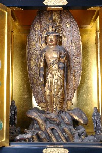 | こちらが本尊の十一面観世音菩薩さんです。 制作年代等は不明です。 室町時代、この地に住んだ船戸次正という武将が、奈良の長谷寺の観音菩薩を信仰し、ここに勧請したものとされています。 奈良の長谷寺の本尊と同木であるといわれています。 十一面観音といえば、井上靖の『星と祭』を想起しますね。湖北の十一面観音を訪ねる話。 ぼくは高校時代、新聞に掲載されたこの本の広告に描かれた十一面観音の絵にひかれて、とても高かったハードカバーの本を買いました。つい最近まですっかり忘れていましたが、この頃、仏師になりたいなんてことを口走ったことがあるようです。 ぼくは寺で育った人間ではありませんし、とくに仏教の信仰を持っていたわけではありませんが、十一面観音さんにだけはご縁があったようです。 |
