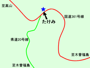 十月の連休に行ってきました。お蕎麦やさん「たけみ」です。 場所は国道361号線開田高原の西野地区、県道20号線とのT字路のすぐそばです。