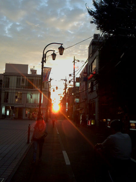 夕陽と一直線になってて