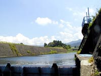 取水口:中央の森が竹崎水源です