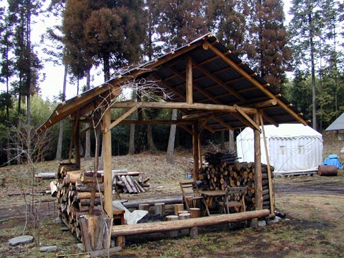 久しぶりに尋ねた友人の宇野君の森で 素敵な火炊き東屋を見つけました。