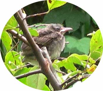 もしかしたら枝から落ちたのかも知れません。 周囲の草むらを探しましたが見つかりませんでした。 親を追って無事飛び立ったのでしょうか。 その夜は久しぶりに激しい雨が降りました。 |