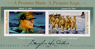 (注: 切手写真はマーシャル諸島発行のもので I shall return と
