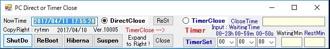 PC停止4動作(シャットダウン、再起動、休止状態、スリープ)の即停止またはTimerにより遅延停止は VB によるプログラム作成は可能であり、数年前に完成(図-1)していた。 しかしスリープ後にPCを復帰させるプログラムを作成したいと考えてNET上を調べていたが、「難しいとか、出来ないとか」の書き込みを目にして、諦めてフリーソフト「ねむねむスケジュラー」(使い勝手はよい)を使用していた。 |
