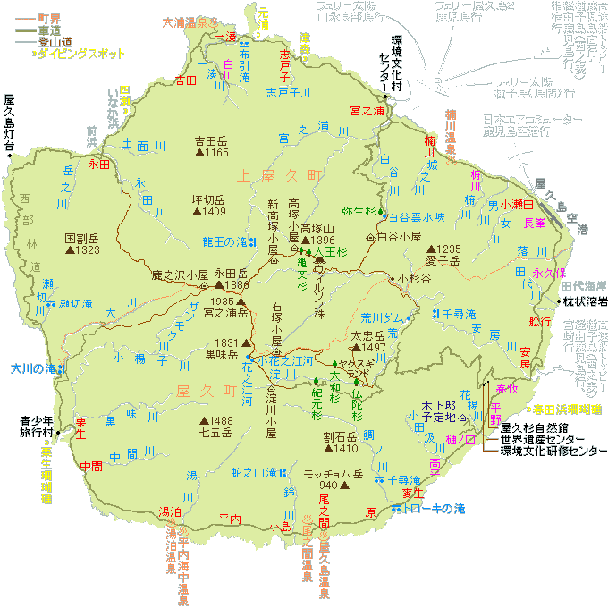 | 細かいことはまた後で。 屋久島の概略図を転載します。 |