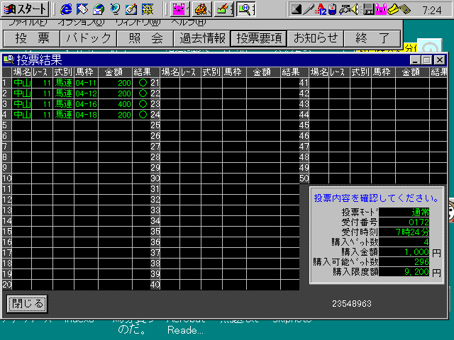 と思って見てみると、なんと馬番を間違えた!ダイタクは3番だったのに、なんと4番から流してしまいました。(詳しくはこちらちょっと重いけどね。)あーあ、何やってるんだか。