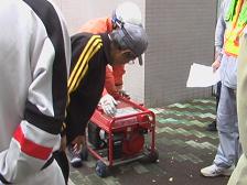 7)いろいろな訓練 各ブロックに分かれて、訓練は消防署の方から指導を受けました。 | ||