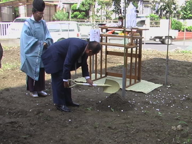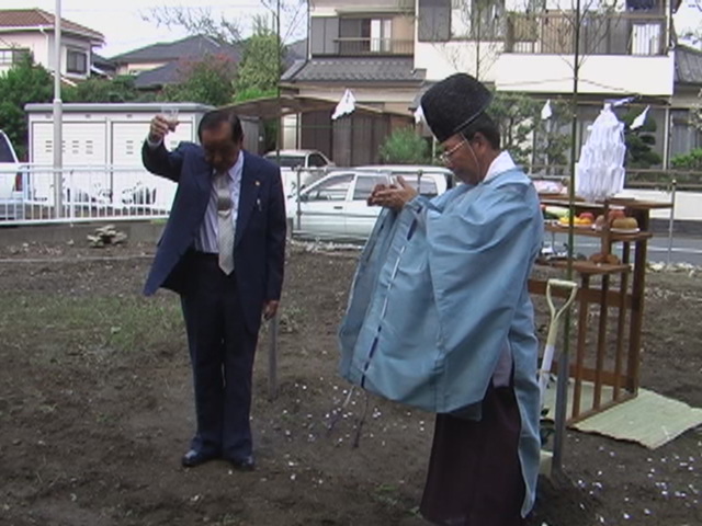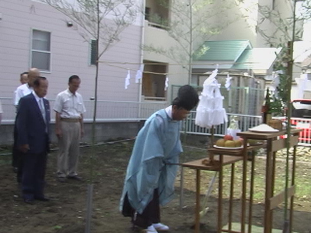 | 代表者による、玉ぐしの奉納 | これで滞りなく、地鎮祭が済みました | |