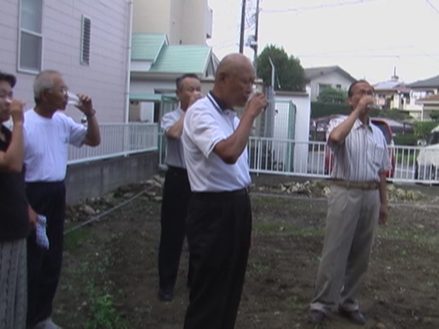 | 皆さんで、工事の無事を祈り、御神酒を頂きました。 | ||