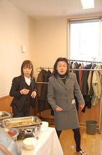 祝賀会を前に料理の準備をしました。この間に板川市長と吉田委員長のツーショット。