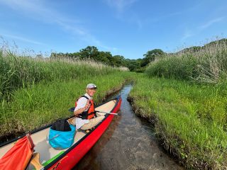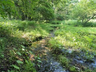 「左に支流の流れ込みがるので、漕ぎ寄せましょう。最初に見ていただいた湧水が、この小さな川となっています。」