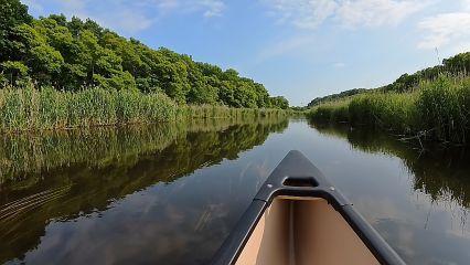 再びカヌーに乗って川の上。川面に野鳥達の声が響き渡ります。川幅が少し狭くなり、両岸に河畔林が迫ってきました。右岸の葦の茂みから赤い鳥が二羽飛び出し、目の前を横切り左岸の蘆の中へ。「ベニマシコですね」專齊さんと私、二人同時に声を発しました。前回ここに来た頃は野鳥への関心はなく、鳥の名前は全く分かりませんでした。ウトナイ湖がバードサンクチュアリで、カヌーでは立ち入れないことに不満を感じてもいました。そんな私も、10数年前のある瞬間野鳥に魅せられ、今ではすっかり野鳥の虜。でも待てよ、、前回の美々川での朝出会った、大きくて黒く頭の赤いキツツキの姿がはっきり思い出されるってことは、私が最初に野鳥を意識したのは、ここ美々川だったのかもしれない。湧水巡りにしても、本格的に取り組んで20年ほどですが、最初の場所は美々川源流の湧水です。あの頃は、ただがむしゃらにカヌーをし、キャンプを楽しむことが目的だったのですが、美々川での出会いがその後の私に大きく影響を及ぼし、より豊かなものにしてくれたんだと改めて感じました。私にとって美々川は本当に大切な川です。