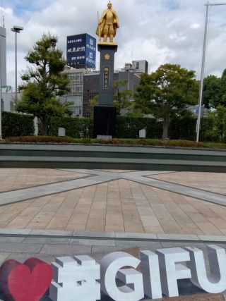 10時半、JR岐阜駅前で桂くんと合流。岐阜駅前は曇り空。雲には切れ間があり青空も少しばかりのぞいています。「せめて岐阜城の見学を終えるまでは、このまま降らないでください!」信長様に願掛けしました。