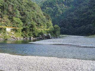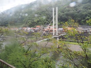 守内かさ神駅を過ぎた辺りに沈下橋が見えてきます。2006年には、この橋の下流側川原でキャンプしました。思い出の橋をしっかり写真に納めようと窓にへばりつきますが、あっという間に通り過ぎてしまいました。ダメだったと思いましたが、それなりに撮れていたので一安心です。