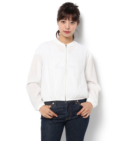 【送料無料】 メイン素材にシアーな生地を使用したレディライクな表情のブルゾンです。袖口や裾などのリブ部分は控えめにまとめて、ソフトなギャザーを寄せることでシルエットふんわり感をプラスしました。カジュアルユースはもちろんのこと、モードスタイルや甘めアイテムとの相性も◎です。 ムルーア/MURUA アウター|ブルゾン・スタジャン